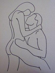 While I like these sketches (R. would not approve:), I am awaiting their addition with the paint, and then with the words.