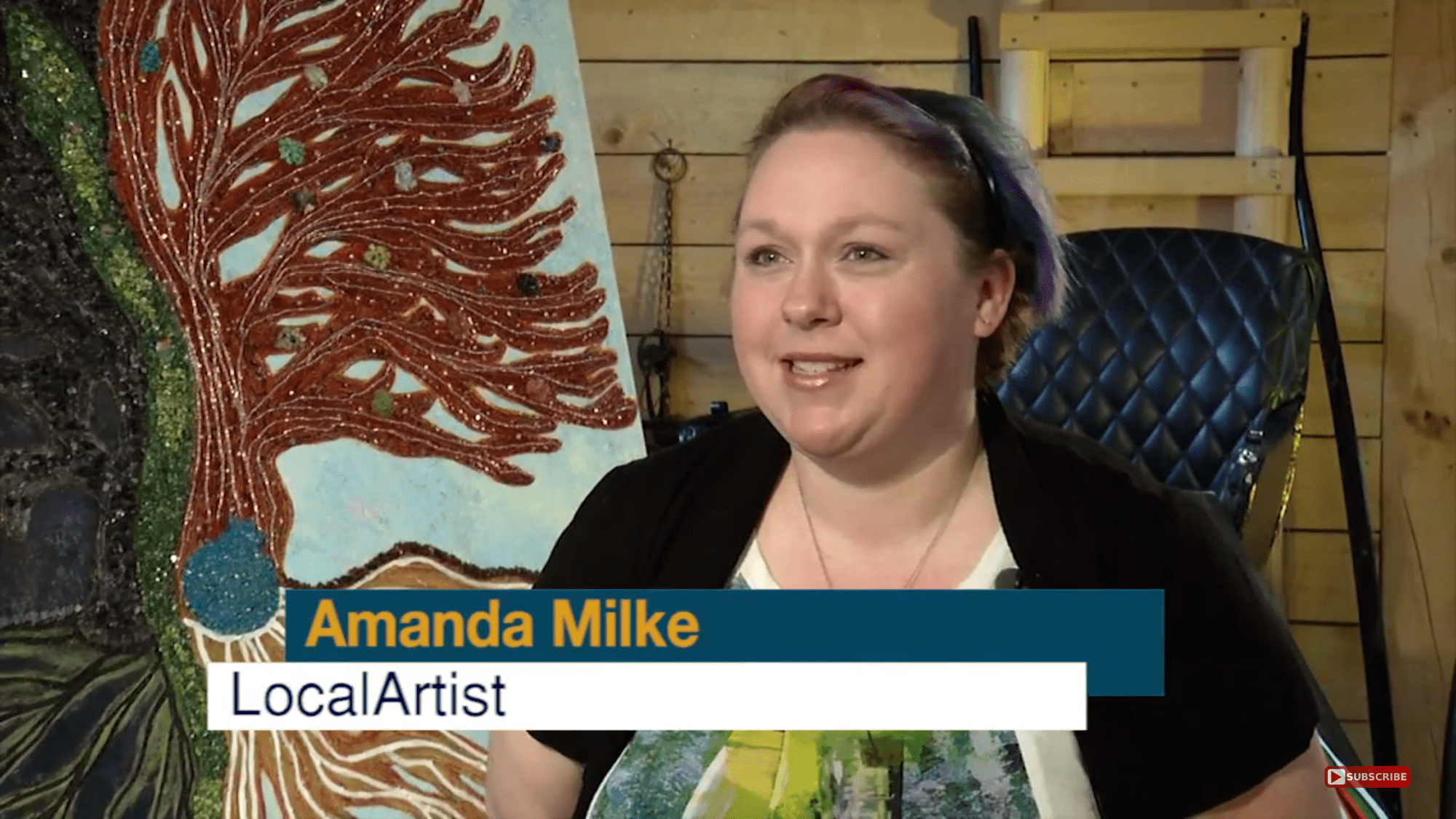 Once we figured out how to attach a mic to a shrug and conceal wires we were golden. Though not shown I did start off the interview joking that “I paint so I don’t have to talk much” lol with much chopping and cropping later below is my 90 second contribution to this piece on Art in the community.