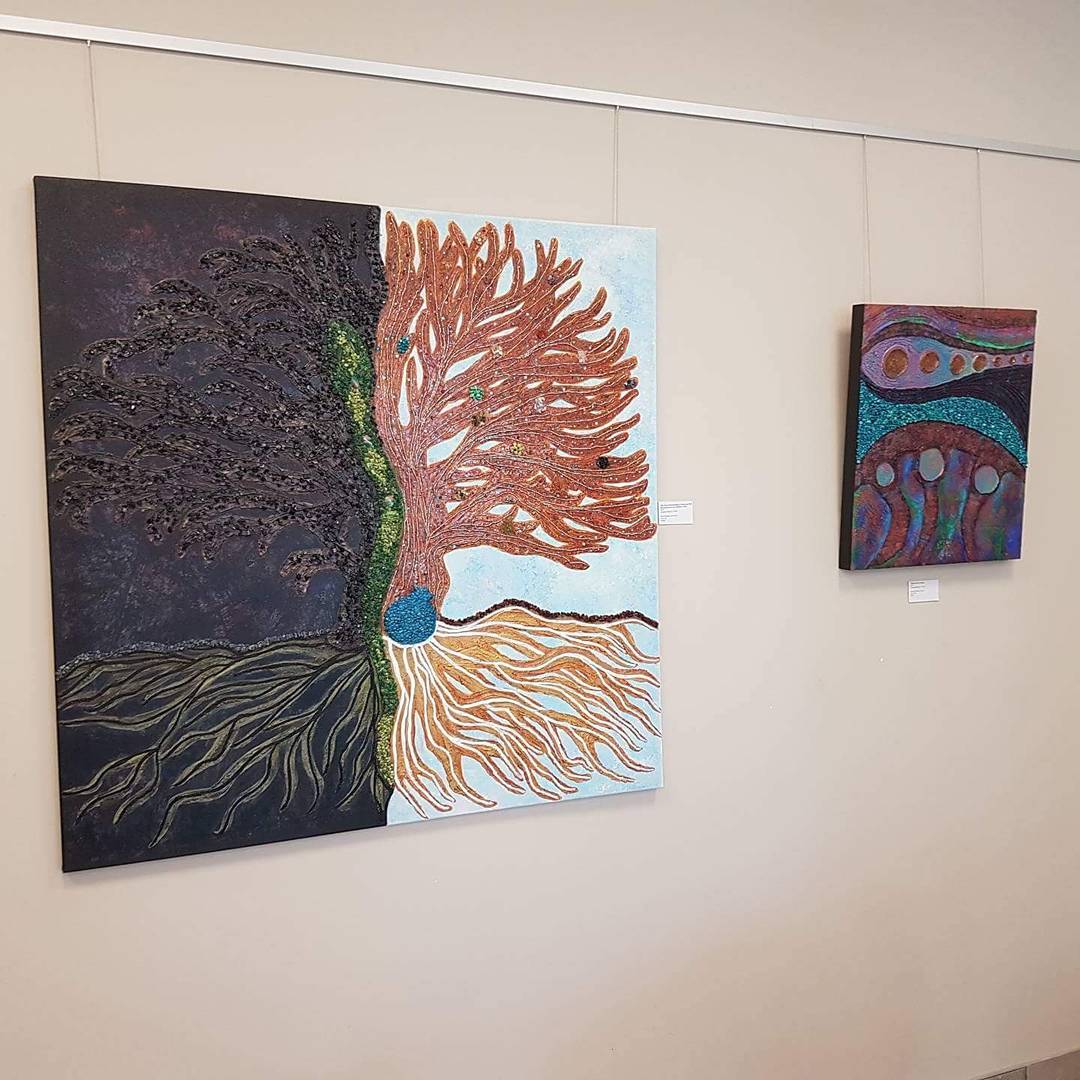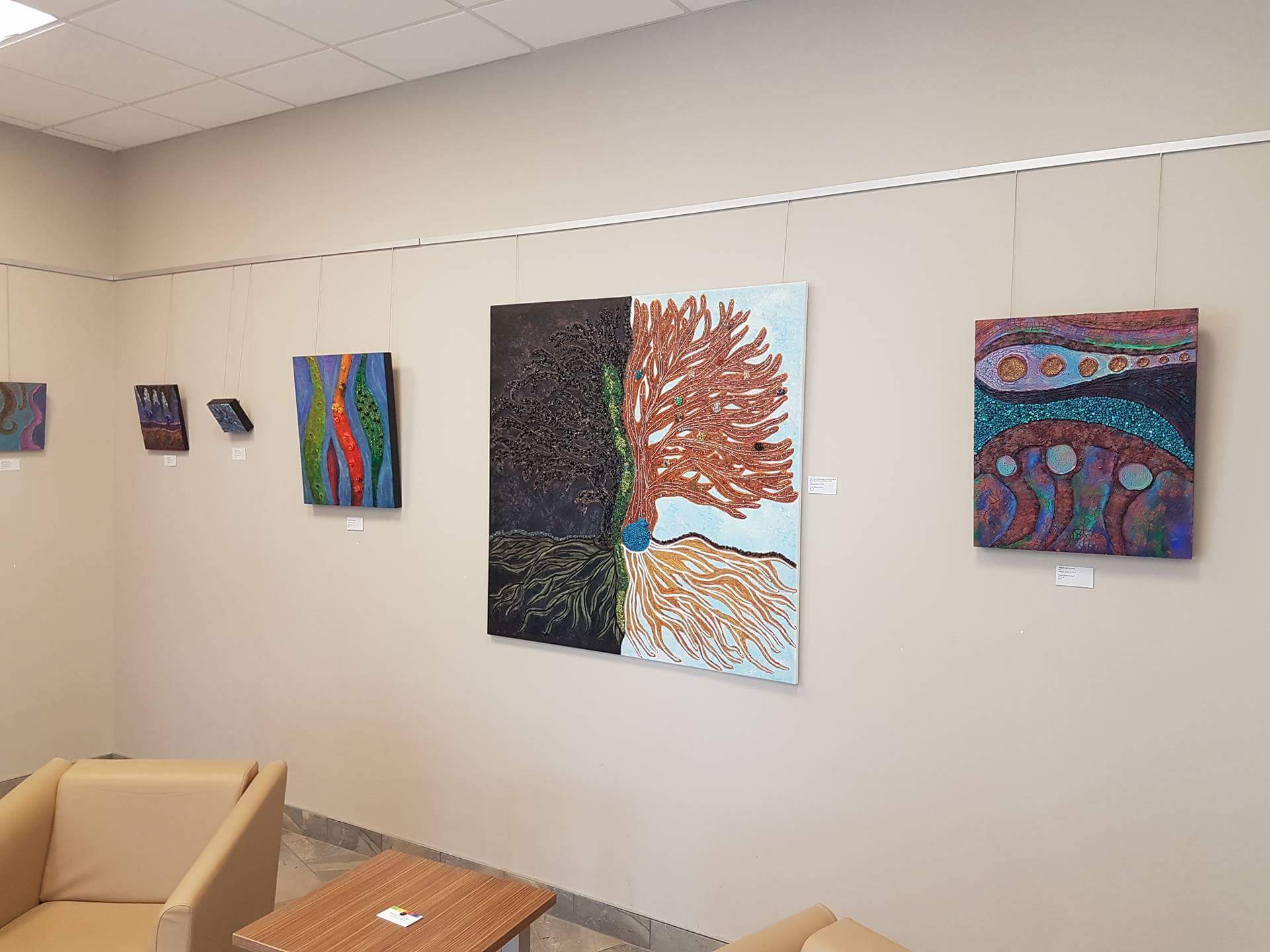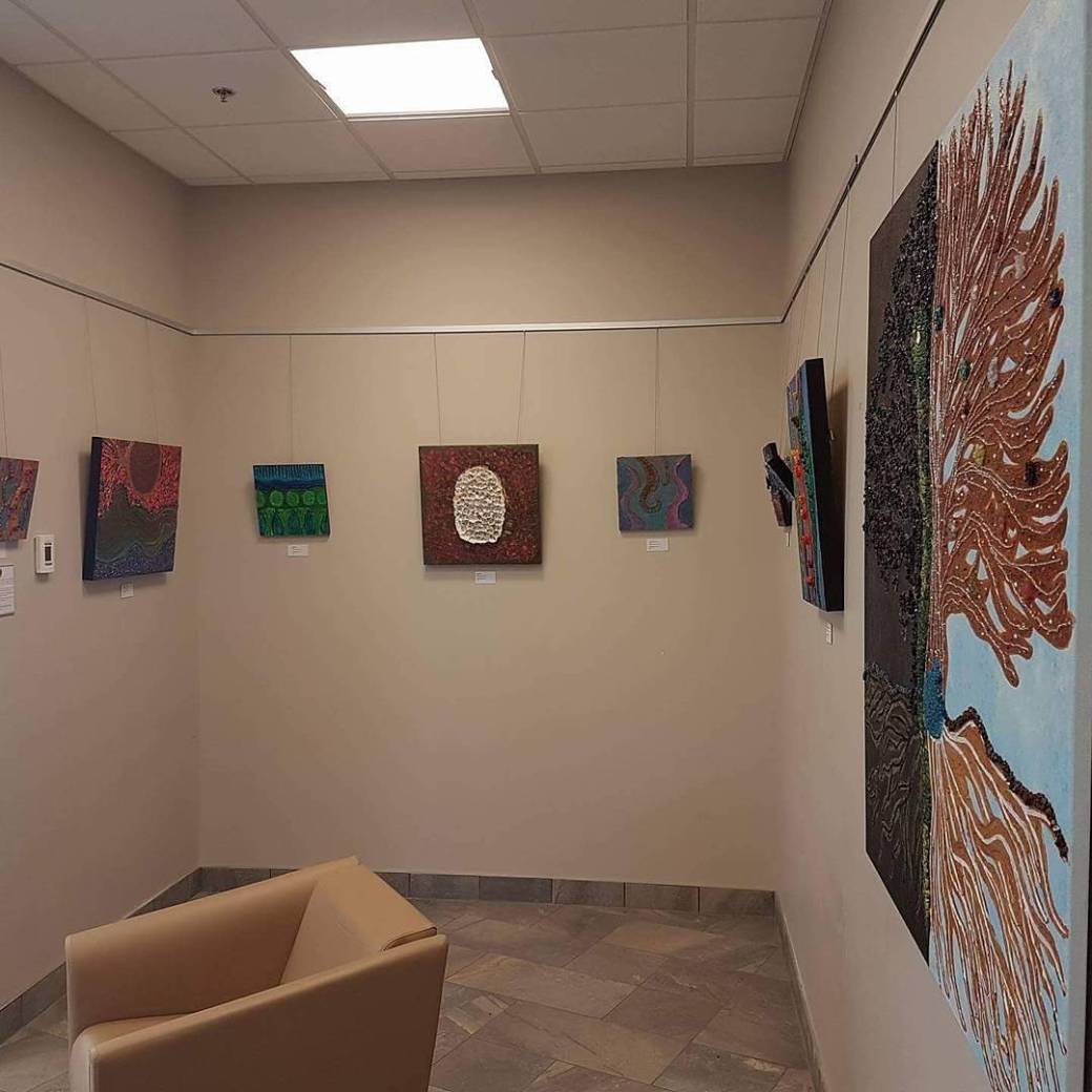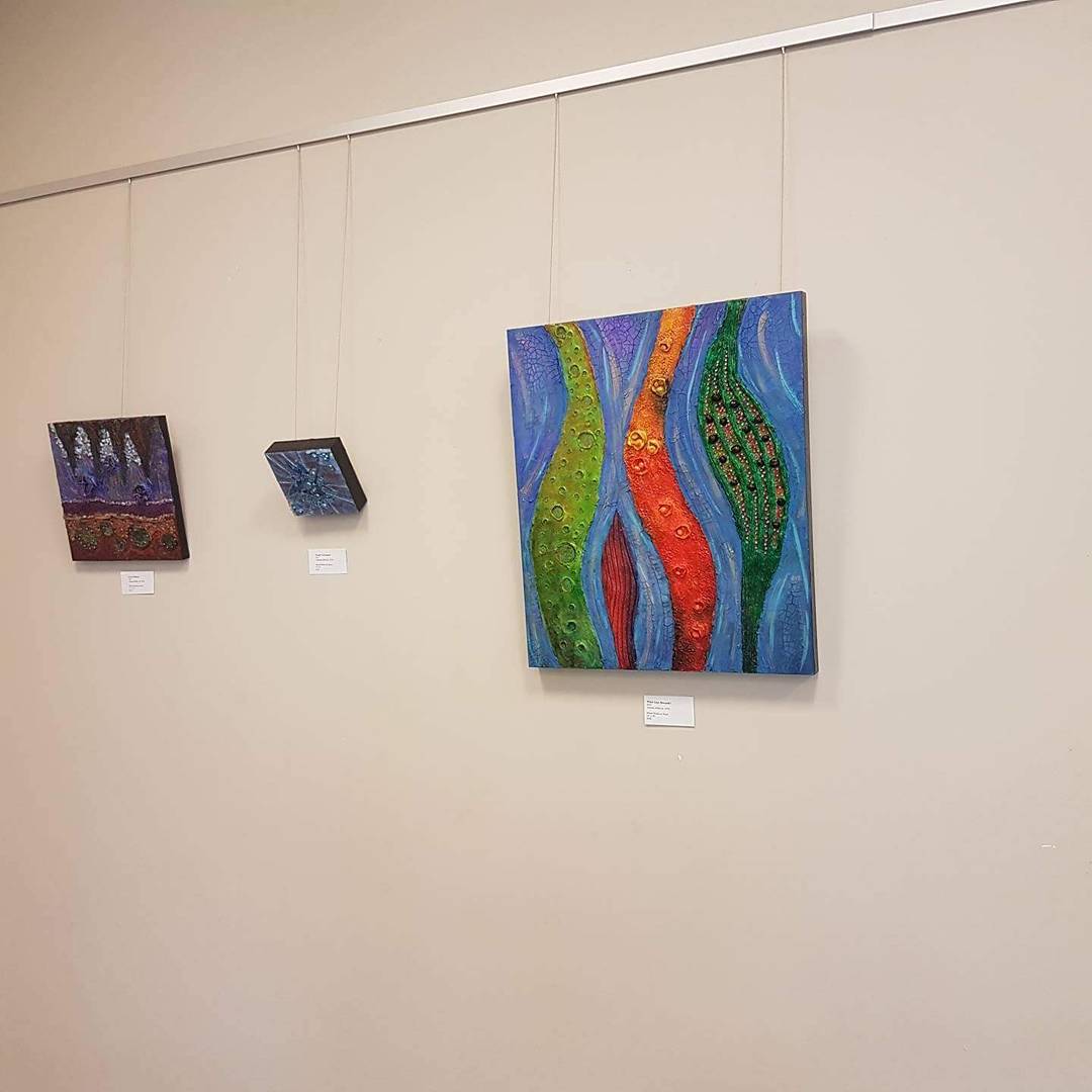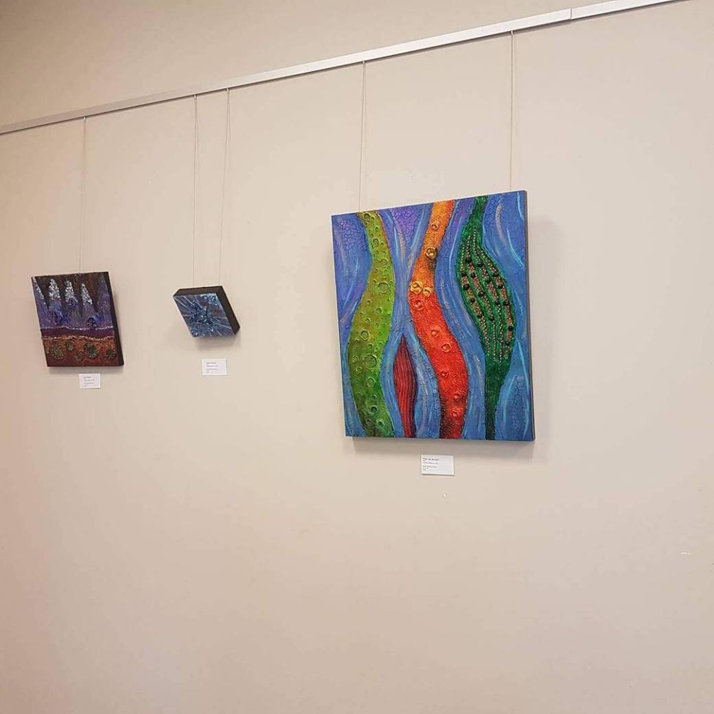 But today I wanted to take a minute and share with you my latest Mixed Media Art Exhibit that is on display at the Fort Saskatchewan Public Library/ City Hall building in Alberta Canada.