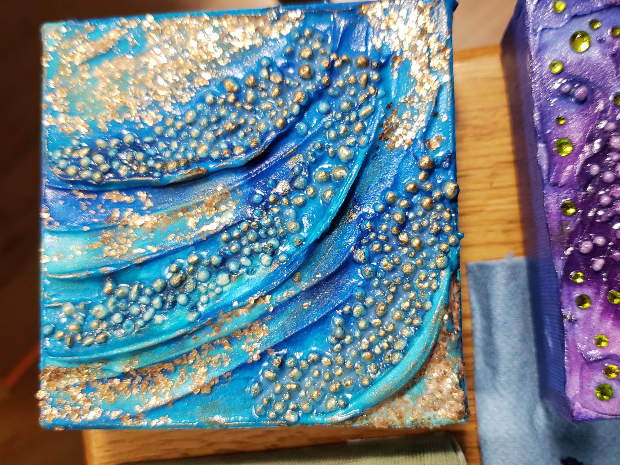 I wanted to create something with big color and texture to fit a small space and I came up with these little beauties.