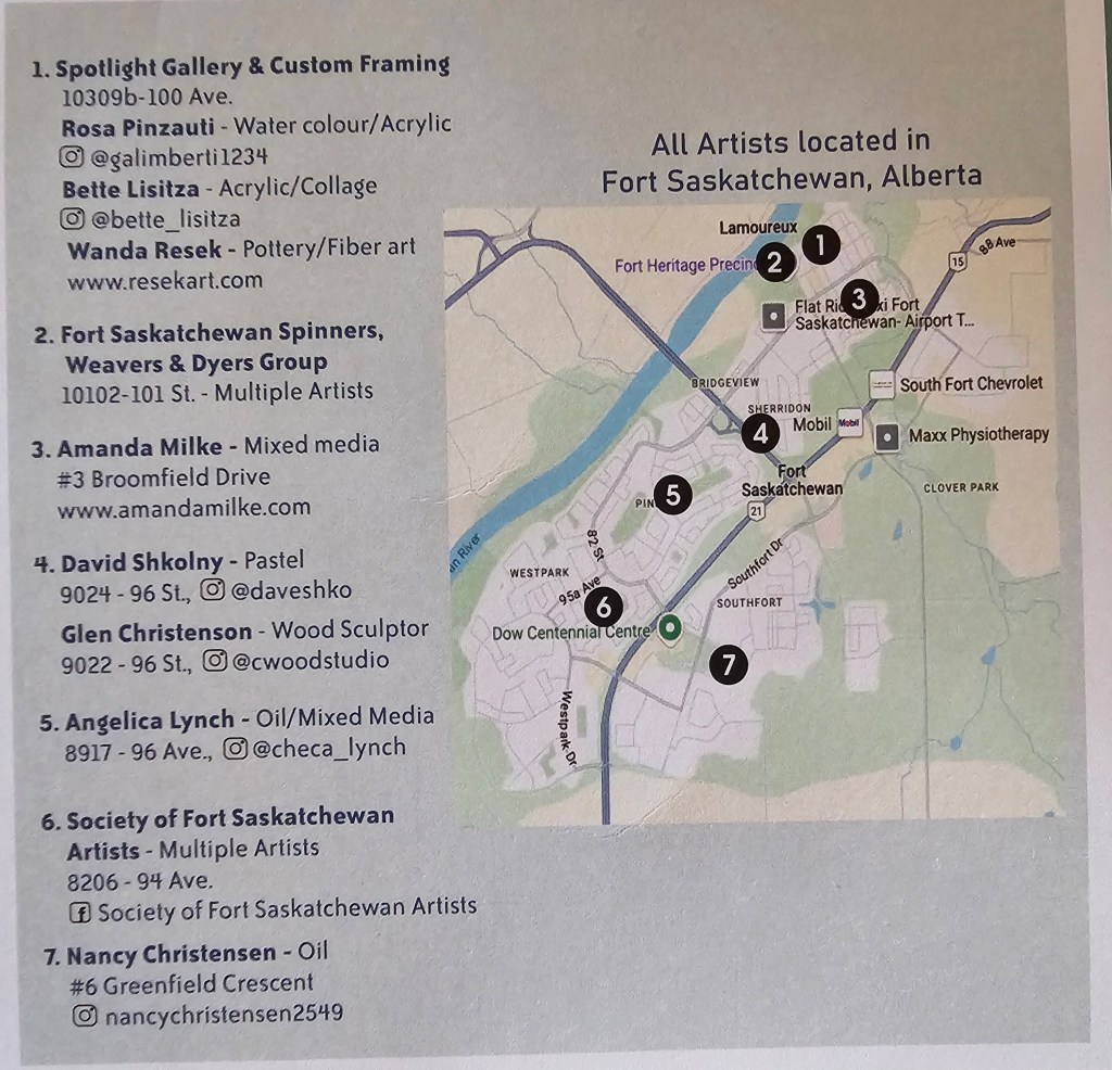 Exciting changes this year include the Society of Fort Saskatchewan Artists participating as a group so make sure to check out their location as well!