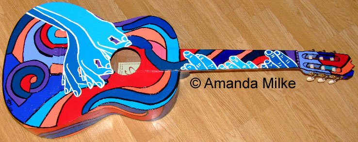 Amanda Milke imagines musical instruments in the bright colors of acrylic. Maybe I should say she re-imagines instruments in acrylic.