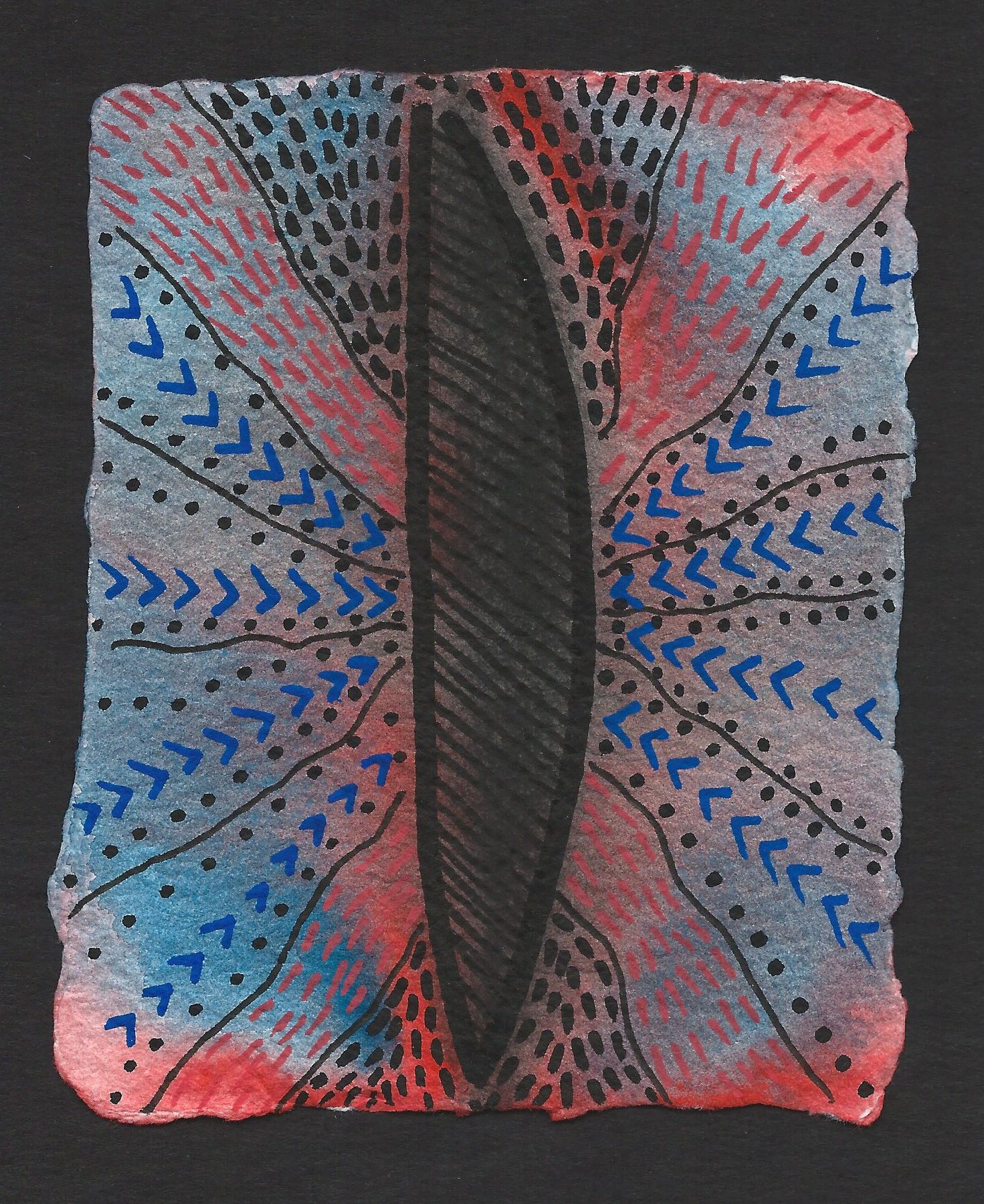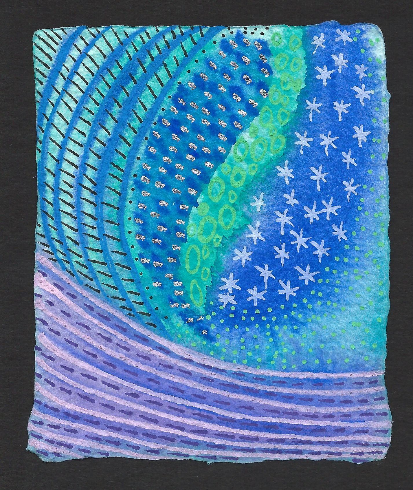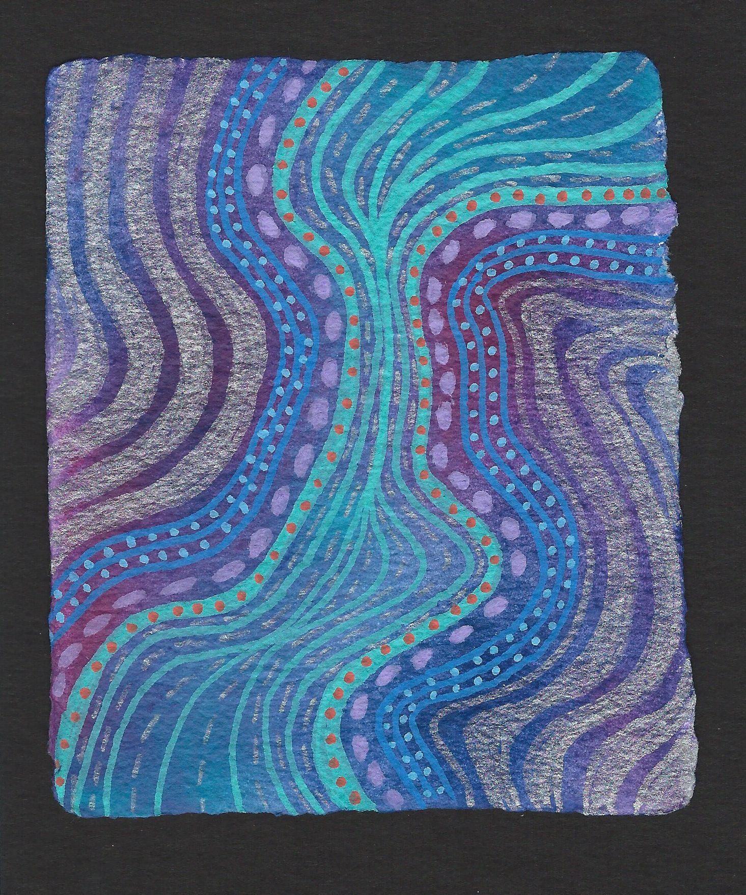 The repeating patterns are symbolic of a spiritual language/dialogue. Just as braille forms shapes and patterns to communicate, I too am feeling my way with brush and pen to speak.
