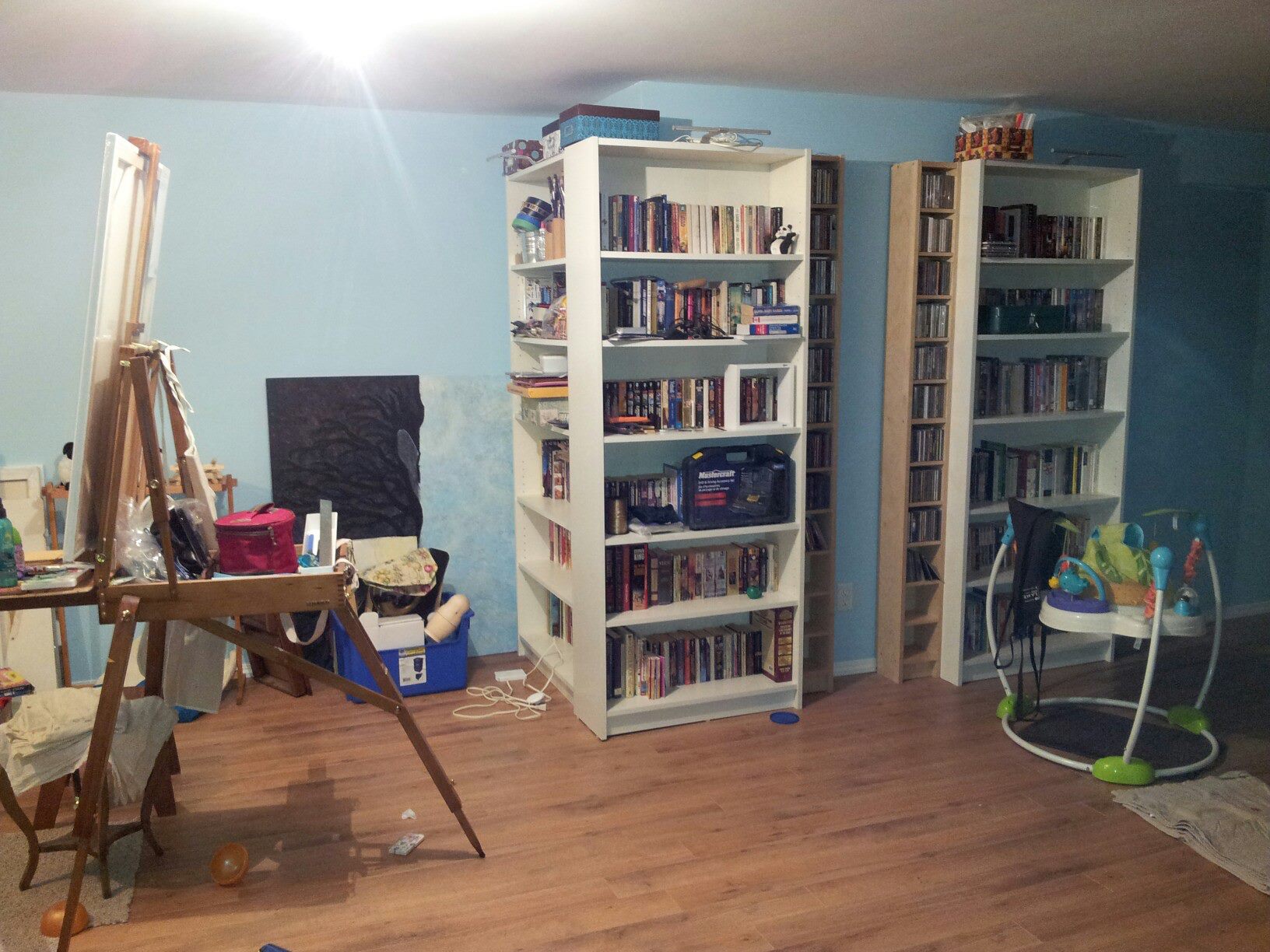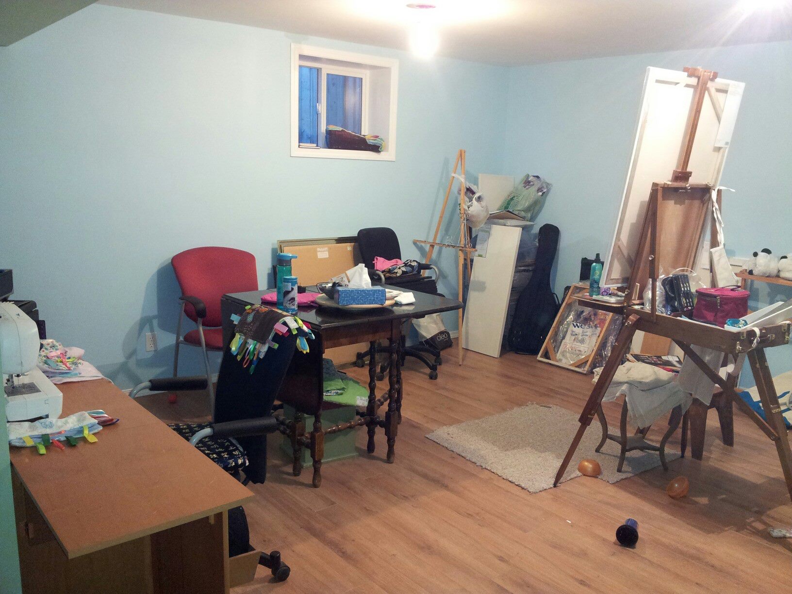 The other half of the space will be shared by my husband for all his hobbyist en-devours and used as our Multi-Media room including our sizable home library.