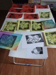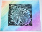 The betta fish piece was a trial run of printing on painted paper. I thought the multicolored effect suited the fish.
