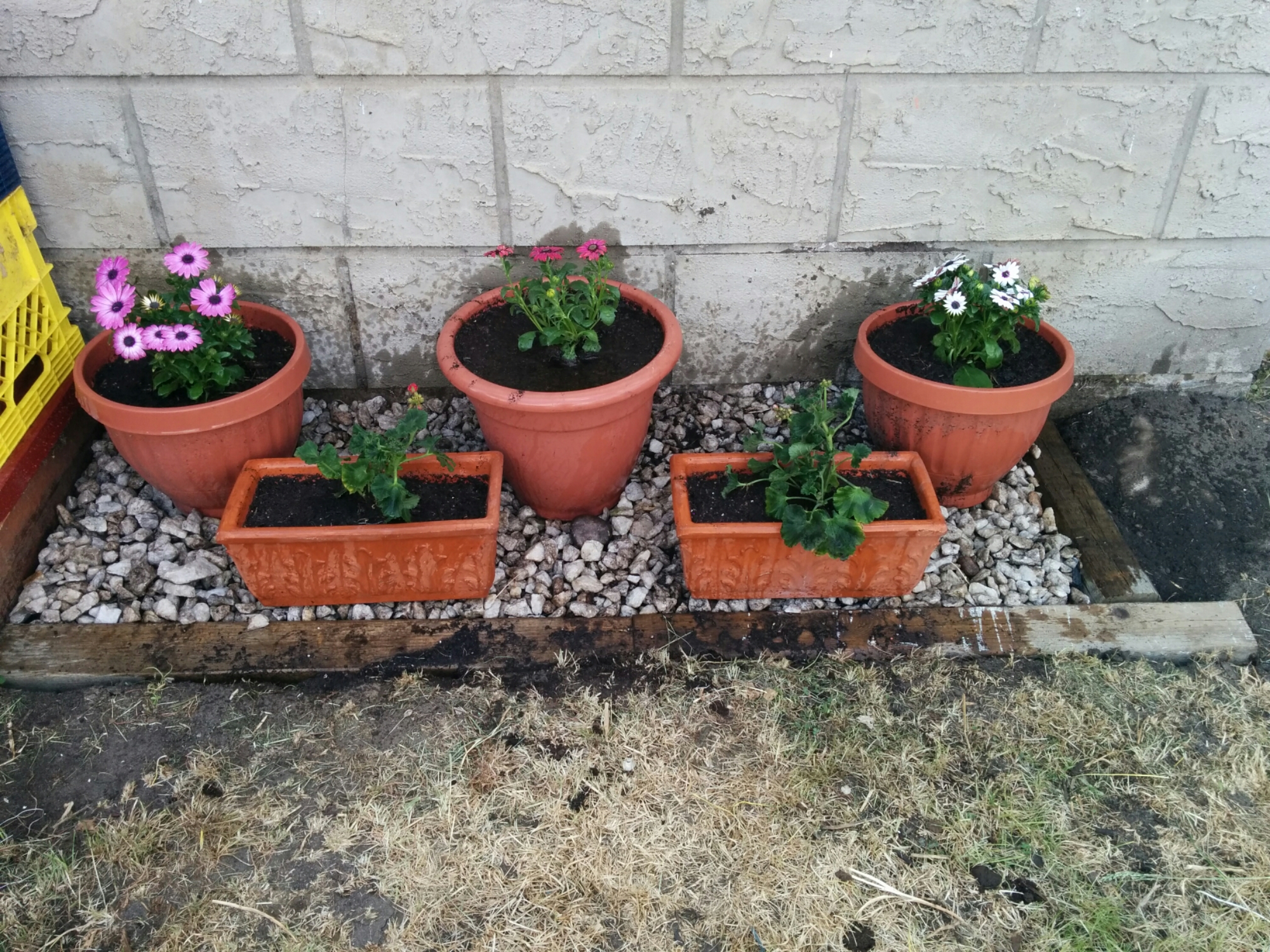 I asides from working in the veggie garden I also planted a few Gerber Daisies and Geraniums this weekend to add a bit more color to the yard.